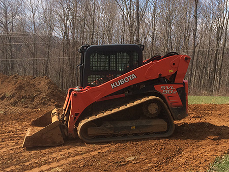 The Kabota SVL-90 is a Compact Track Loader, a very versatile machine. It is able to move small or large amounts of material quickly and easily. It also has a 72" Bush Hog attachment capable of clearing brush up to 5" in diameter!