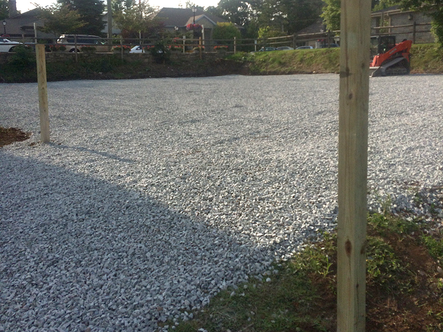 Graveling a new parking lot.