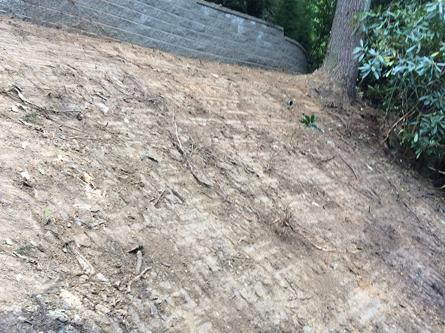 Sloping the land for a retaining wall.
